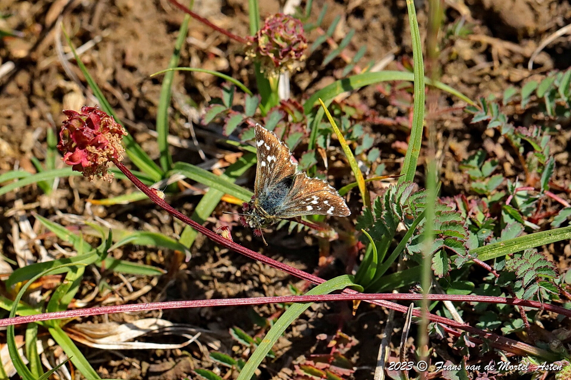 Kalkgrasland dikkopje - Spialia sertorius E: Red Underwing Skipper D: Wiesenknopf-Puzzlefalter