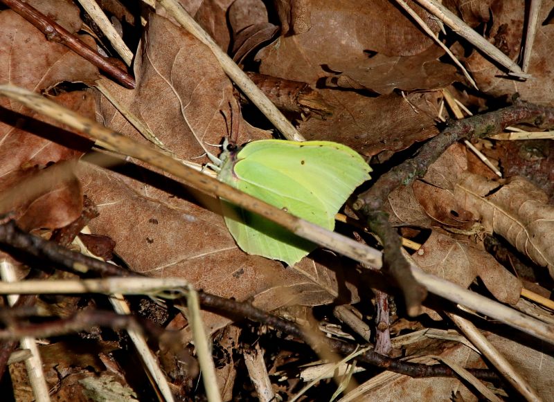 De eerste Citroenvlinder van 2015, wel niet de mooiste foto, maar ja.